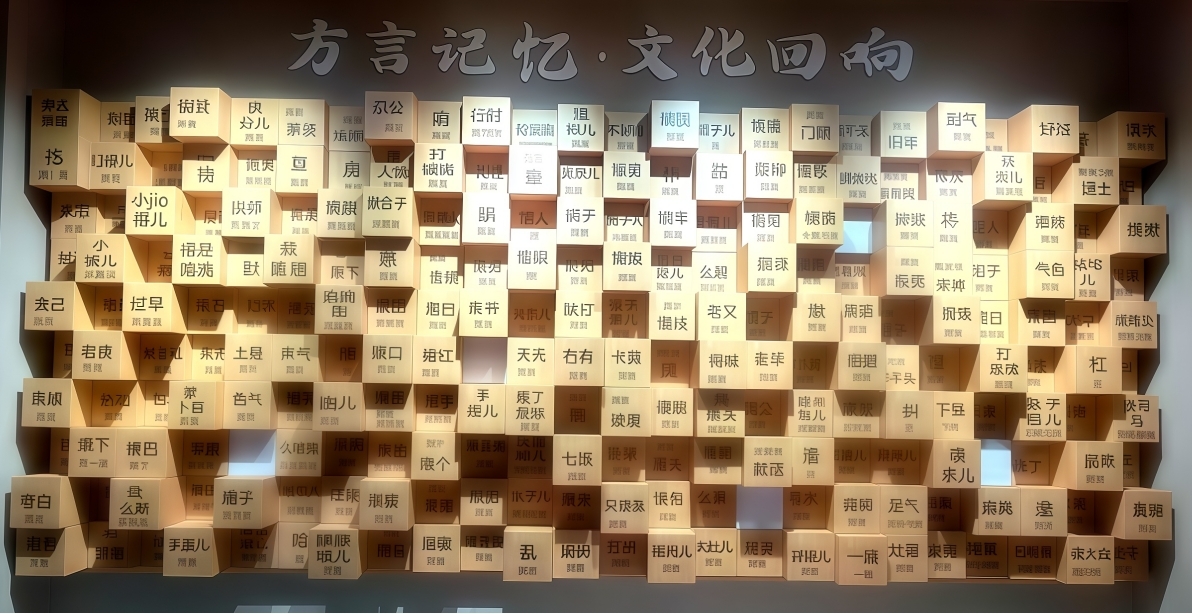 浔音寻根展区:通过校地合作采集的方言成果,以互动方式系统保存并生动再现濒临消逝的九江乡音。