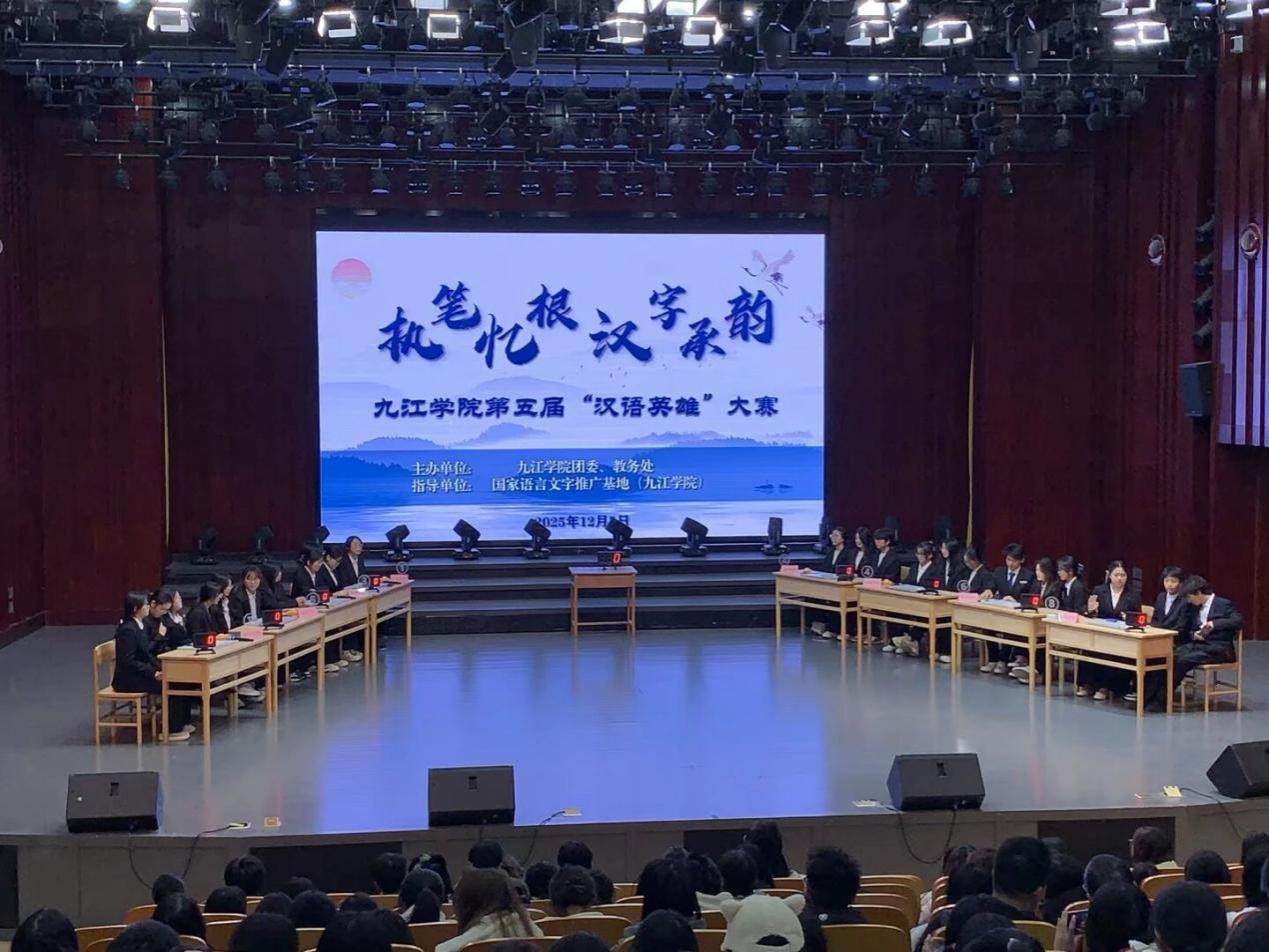 为推广国家通用语言文字、传承中华优秀传统文化,12月5日晚,由国家语言文字推广基地(九江学院)指导、校团委、教务处主办的九江学院第五届“汉语英雄”大赛在艺术学院音乐厅圆满落幕。大赛以“执笔忆根,汉字承韵”为主题,经各学院初赛、校级复赛选拔,最终8支院系队伍脱颖而出晋级决赛,为师生呈现了一场兼具知识性、趣味性与观赏性的文化盛宴。 校团委、教务处相关负责人及师生400余人参加活动。