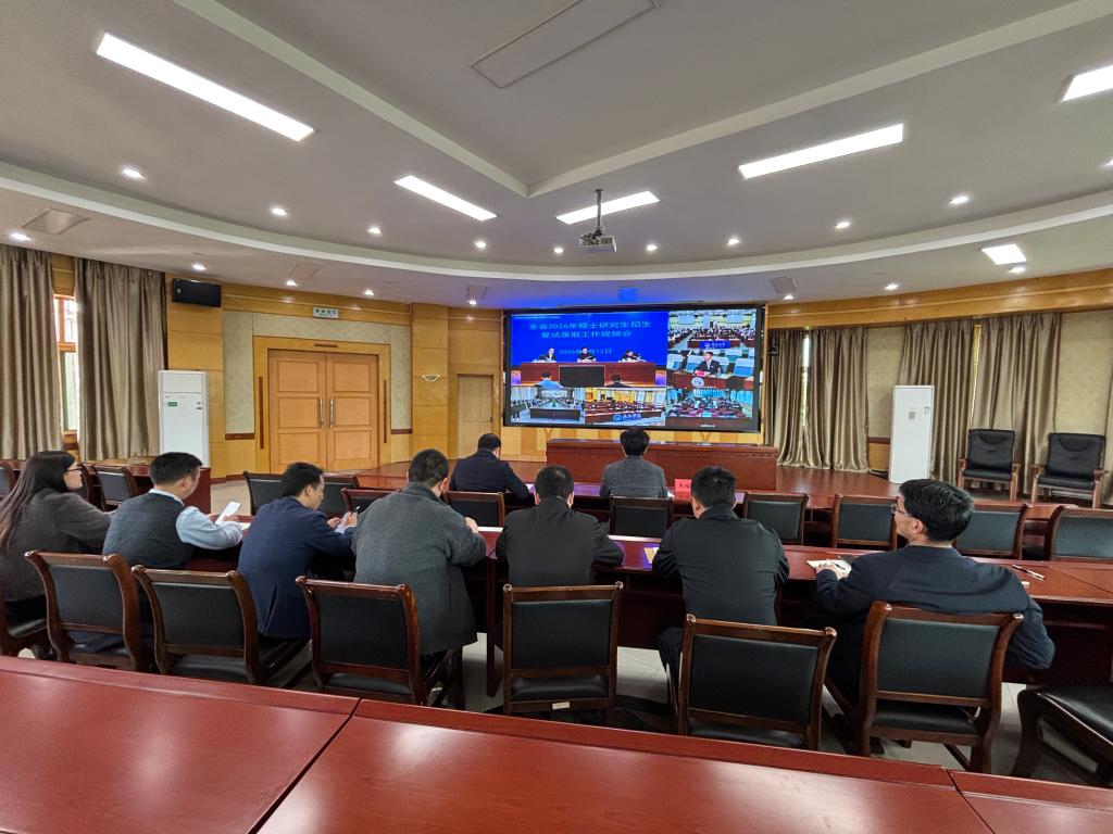 近日,江西省教育厅召开2026年全省硕士研究生招生复试、调剂录取工作视频会议。我校在行政楼四号会议室设分会场,校党委委员、副校长吴维勇,校纪委、发展规划与研究生处及各招生培养单位相关负责人、工作人员参会。