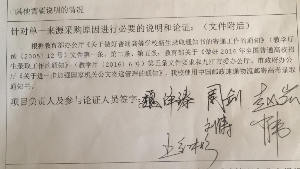 项目名称:使用中国邮政特快专递邮寄录取通知书项目。