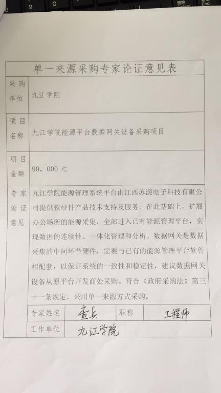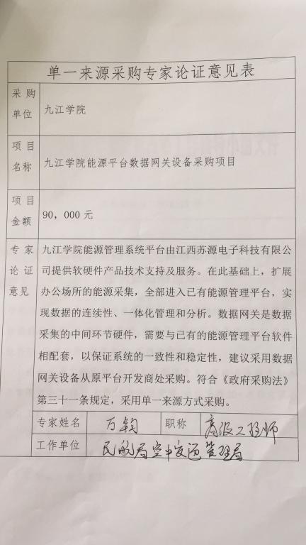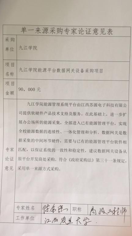 九江学院远程计量控制数据网关采购采用单一来源方式采购,该项目拟由江西苏源电子科技有限公司提供专业软硬件产品技术支持和服务工作。现将有关情况向潜在采购供应商征求意见。征求意见期限从201991日起至201994日止。
