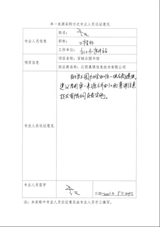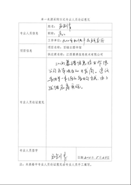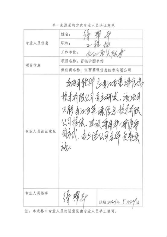 采用单一来源采购方式的原因及说明:本项目软件是由江西慕课信息技术有限公司自主研发,只能由江西慕课信息技术有限公司提供,建议采用单一来源方式,由江西慕课信息技术有限公司负责实施。